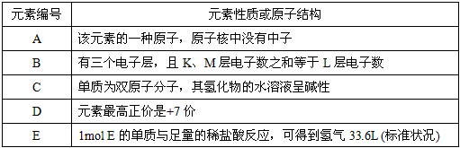 Y4、填空题 现有部分短周期元素的性质或原子结构如下表