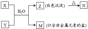 (4)由表中元素形成的常见物质X、Y、Z、M、N存在以下转化关系: