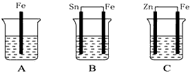 (3)C中被腐蚀的金属是__________,总反应离子方程式是____________________,比较A、B、C中铁被腐蚀的速率由快到慢的顺序是__________。