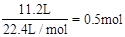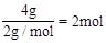 (2)标准状况下,4gH2的物质的量为,11.2LO2的物质的量为