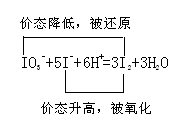 4、选择题 ?自然界存在NaIO3,可利用NaIO3与NaHSO3溶液来制取单质碘。反应分两步进行:IO3-+3HSO3-=I-+3SO42-+3H+;IO3-+5I-+6H+=3I2+3H2O。下列说法错误的是(?)