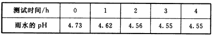 (1)现有雨水样品1份,每隔一段时间测定该雨水样品的pH,所得数据如表