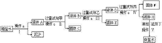 (2)在Ⅱ步中,加入过量试剂甲后,生成了两种大量的沉淀,则试剂甲为________溶液。试剂乙为?,固体F为?。