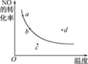 2NO2(g)? △H<0中NO的转化率与温度变化关系曲线图,图中有a、b、c、d四个点,其中表示未达到平衡状态,且v正<v逆的点是