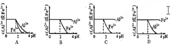 4、选择题 已知Ksp[Al(OH)3]=1.3×10-33 mol4·L-4, Ksp[Fe(OH)3]=4.0×10-38 mol4·L-4。现向pH=0浓度均为0.04mol·L-1的Al3+、Fe3+溶液中加入NaOH溶液,以调节pH(设溶液体积不变),该过程中Al3+、Fe3+的浓度与pH关系正确的是(?)
