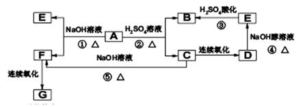⑹写出由F和G 在一定条件下合成高分子化合物的化学反应方程式: