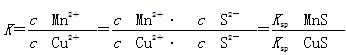 5、选择题 化工生产中常用MnS作为沉淀剂除去工业废水中的Cu2+:Cu2+(aq)+MnS(s)