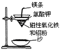(1)铝热反应实验:取磁性氧化铁粉按课本中的实验装置(如图)进行铝热反应,将反应