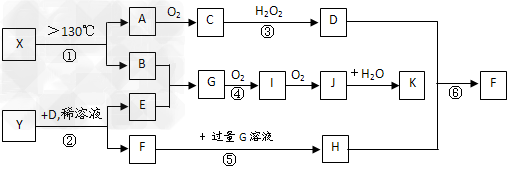 3、简答题 以下为中学常见物质,转化关系如下.C与B溶液反应产生气体F,D可在F中燃烧,图中部分产物略去.
