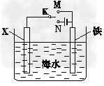 2、填空题 (1)利用下图装置,可以模拟铁的电化学防护。若X为碳棒,为减缓铁的腐蚀,开关K应该置于_____处。若X为锌,开关K置于M处,该电化学防护法称为____________________。