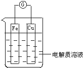 4、填空题 ①图中电解质溶液为硫酸铜溶液,则Fe电极是______(填“正极”或“负极”,下同),其电极反应式为______,该反应是______(填“氧化”或“还原”,下同)反应;Cu电极是______,其电极反应式为______,该反应是______反应.