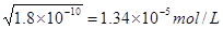 参考答案:(1) )1.34×10-5mol·L-1?(2)1×10-5mol·L-1? 1.0×10-10mol2·L-2? <?(1分);无