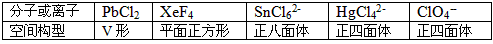 (5)用价层电子对互斥理论(VSEPR)判断下列分子或离子的空间构型
