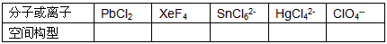 (5)用价层电子对互斥理论(VSEPR)判断下列分子或离子的空间构型