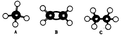 5、填空题 现有A、B、C三种烃均可由石油加工得到,其球棍模型如图所示。