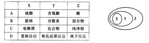2、选择题 下表各组物质或概念之间,不符合右图所示关系的是