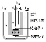 (4)近年来科学家提出了电解合成氨的方法:采用高质子导电性的SCY陶瓷(能传递H+)为介质,用吸附在它内外表面上的金属钯多晶薄膜做电极,实现了高转化率的电解法合成氨(装置如图)