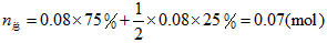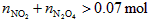 因平衡时混合气体总的物质的量为0.07 mol,由于活塞由C移至B,体积扩大,故,可知充入物质的量必小于0.01 mol