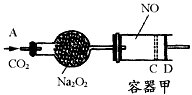 2、计算题  下图装置中,容器甲内充入0.1 mol NO气体,干燥管内装有一定量,从A处缓慢通入气体.恒温下,容器甲中活塞缓慢由B向左移动,当移至C处时容器体积缩小至最小,为原体积的,随着的继续通入,活塞又逐渐向右移动。