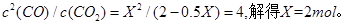 (2)K=c2(CO)/c(CO2)=1.242/0.38="4.0" (3分)