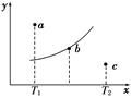 2C,其中A、B、C均为气体,下图中的曲线是该反应在不同温度下的平衡曲线,x轴表示温度,y轴表示B的转化率,图中有 a、b、c三点,如图所示,则下列描述正确的是(?)