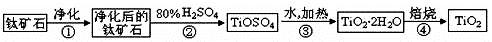其中,步骤②发生的反应为:2H2SO4+FeTiO3=TiOSO4+FeSO4+2H2O。