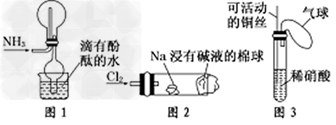 ①实验室收集氨气采用图1所示装置? ②实验室中做氯气与钠反应实验时采用图2所示装置 ③实验室中用玻璃棒分别蘸取浓盐酸和浓氨水做氨气与酸生成铵盐的实验? ④实验室中采用图3所示装置进行铜与稀硝酸的反应? ?