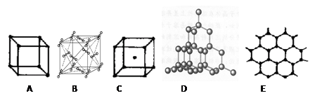 1、填空题  下图表示一些晶体中的某些结构,它们分别是NaCl、CsCl、干冰、金刚石、石墨结构中的某一种的某一部分。