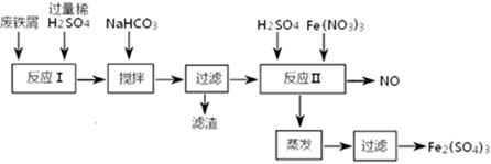 (5)当向含有FeSO4、Fe2(SO4)3溶液中加入Fe(NO3)3和H2SO4时也就相当于加入了稀硝酸。发生氧化还原反应。在反应Ⅱ中反应的离子方程式是:3Fe2++NO3-+4H+=3Fe3++NO↑+2H2O。