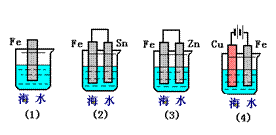 4、填空题 (3分)下列各情况,在其中Fe片腐蚀由快到慢的顺序是?