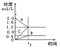 5、选择题 在一定的温度和容积为l L的密闭容器中投入A 、B、C三种气态物质的浓度随时间的变化情况如图所示,下列结论中不正确的是