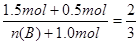 (3)根据条件可知,这是一个等效平衡。由于反应前后是体积不变的,所以要使平衡等效,则C的物质的量全部转化为A和B之和,A、B的物质的量之比应等于2︰3,1.5molC可以生成0.5mol和1.0molB,所以