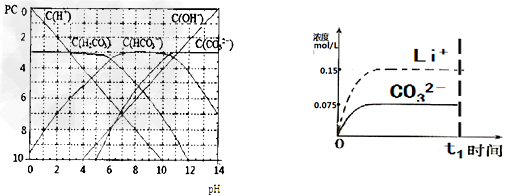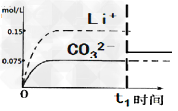 (5)请画出t1时刻后Li+和CO32-浓度随时间变化关系图(用虚线表示Li+?,实线表示CO32-)。