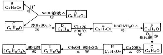5、简答题 如图所示:A具有芳香气味,B、C是家庭中常用调味品,E是石油炼制的重要产物之一,农业上可用于催熟果实,B、C、E中含有相同数目的碳原子,F是一种重要的塑料.