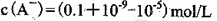 ,正确;D、根据物料守恒和质子守恒得c(A-)=(0.05+10-9-10-5)mol/L,错误,答案选D。