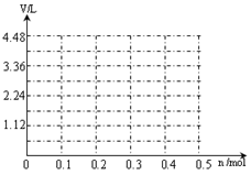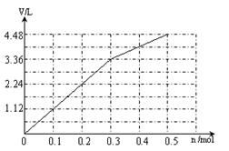 (6)阳极先是Cl-放电,溶液中共有0.3mol Cl-,根据2 Cl- +2 e-= Cl2↑,得转移电子0.3mol时产生气体标准状况下的体积是3.36L;然后是氢氧根离子放电,4OH--4 e-=O2↑+2H+,每转移0.1mol电子就生成0.56L的气体,所以图像如下: