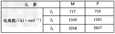 (3)F和M(质子数为25)两元素的部分电离能数据列于下表: