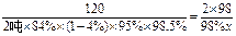 2吨×84%×(1-4%)×95%×98.5%?98%x