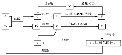 3、填空题 (6分)下已知A~K均为中学化学中的常见物质,它们之间的转化关系如下图所示,其中A
