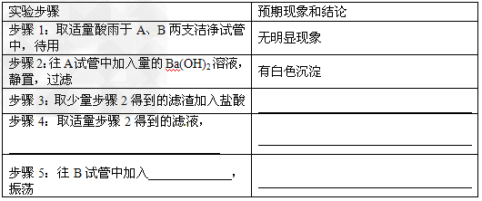 (1)?提出合理的假设:该酸雨中的溶质除H2SO4、HCl外,该小组同学根据硫酸型酸雨的形成过程,预测主要溶质还一定有_____________。