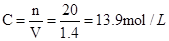 (1)HCl物质的量浓度为,448LHCl为20mol,而溶液体积为