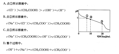 5、选择题 常温下,向20.00 mL 0.1000 mol·L-1CH3COONa溶液中逐滴加入0.1000 mol·L-1盐酸,混合溶液的pH与所加盐酸体积的关系如图所示。下列说法正确的是