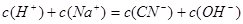 D.C(Na+)+C(H+)= C(CN-)+C(OH-)