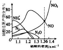 D.还原产物中NH4+的物质的量分数随硝酸密度减少而增大