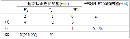 在相同条件下,且保持平衡时各组分的体积分数不变,对下列编号①~③的状态,填写表中的空白