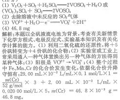 (4)某溶液中含有VO2+、Cr2O32—,现向此溶液中滴入29.00mL0.1mol/L的FeSO4溶液,恰好使VO2+ →VO2+,Cr2O32—→ Cr3+。再滴入2.00mL,0.020mol/LKMnO2溶液,又恰好使VO2+ →VO2+,而Cr3+不变,试求溶液中Cr的质量(mg).