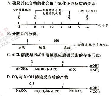 2、选择题 将某些化学知识用数轴表示,可以收到直观、简明、易于记忆理解的效果。用数轴表示的下列知识正确的是(?)