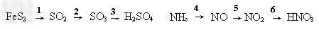 4、选择题 接触法制硫酸和氨氧化法制硝酸分别经过以下主要变化: ? 下列说法中正确的是