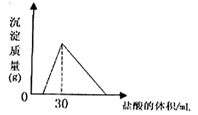 (4)将一定质量的钠铝合金置于水中,合金全部溶解,得到20mol,pH=14的溶液,然后2mol/L盐酸滴定,可得沉淀质量与消耗的盐酸体积关系如下图: