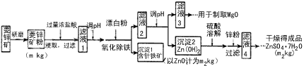 2、填空题 硫酸锌可作为食品锌强化剂的原料。工业上常用菱锌矿生产硫酸锌,菱锌矿的主要成分是ZnCO3,并含少量的Fe2O3、FeCO3、MgO、CaO等,生产工艺流程示意如下